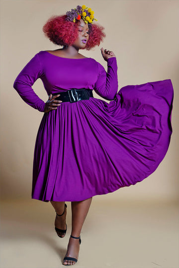 Long Sleeved Mock Neck Flare Maxi Dress- JIBRI