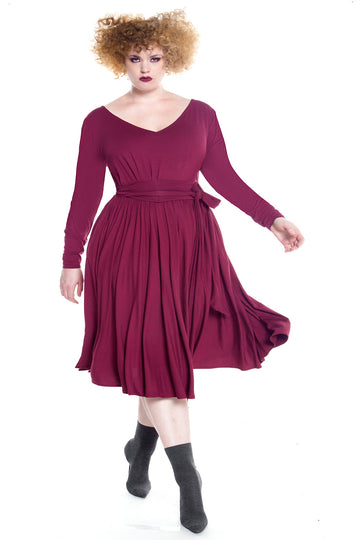 V Neck Long Sleeved Flare Midi Dress- JIBRI