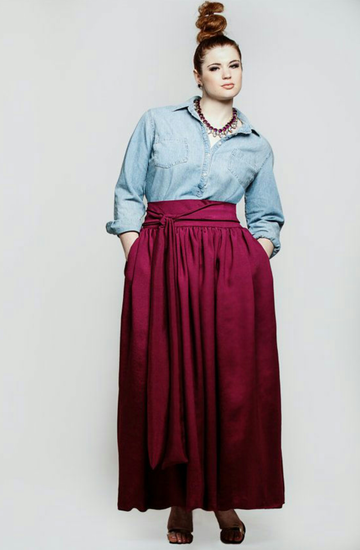 Wine High Waist Belted Maxi Skirt- JIBRI