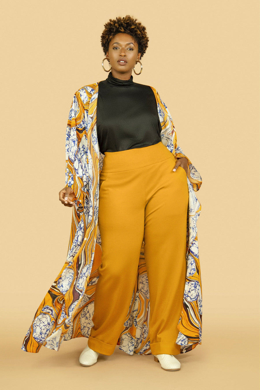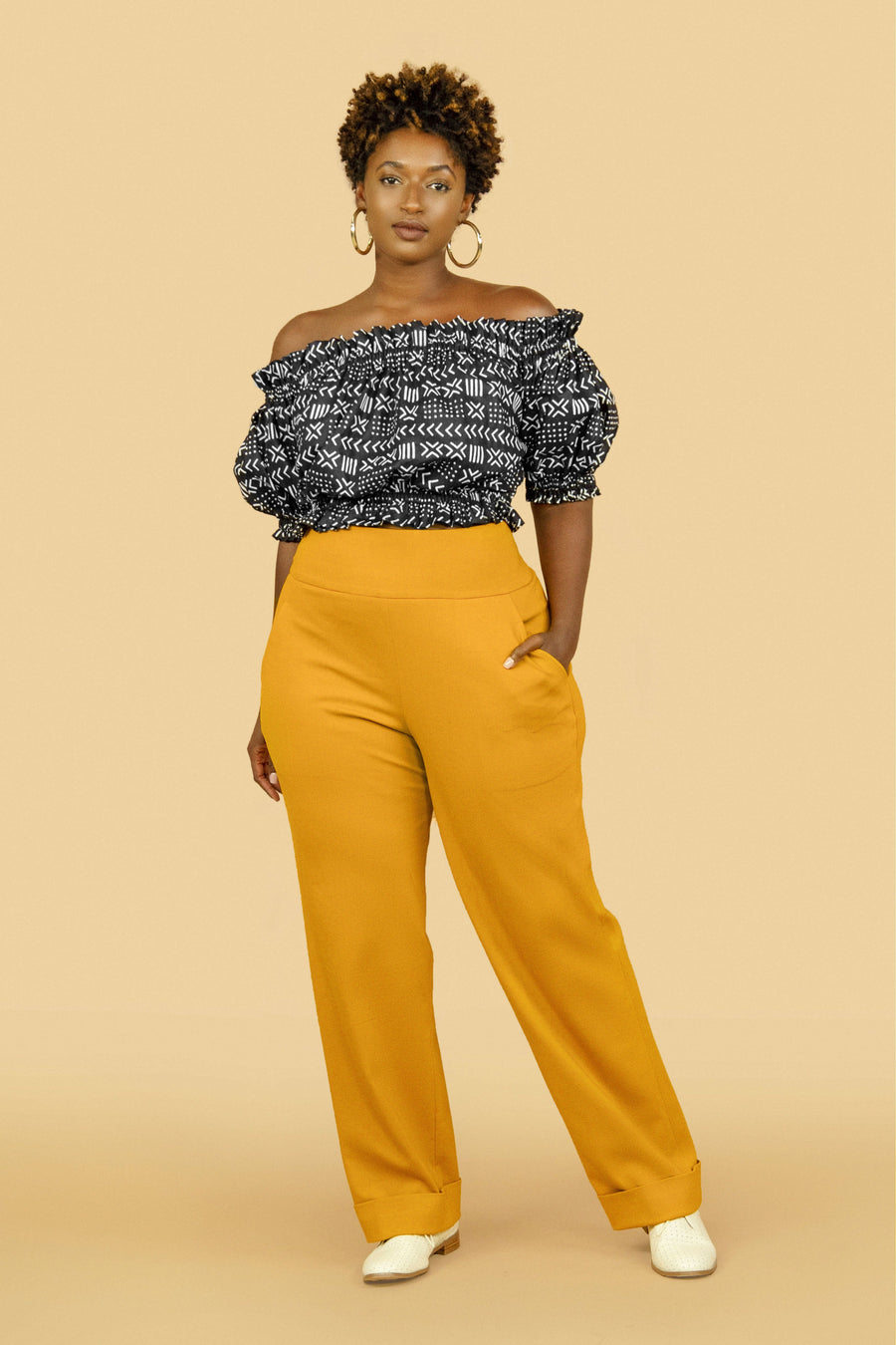 JIBRI Mustard High Waist Wide Leg Slacks w Cuff