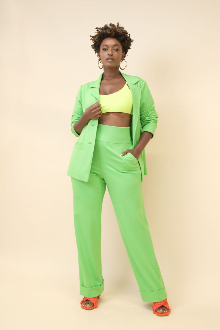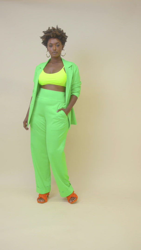 JIBRI Neon High Waist Wide Leg Slacks w Cuff