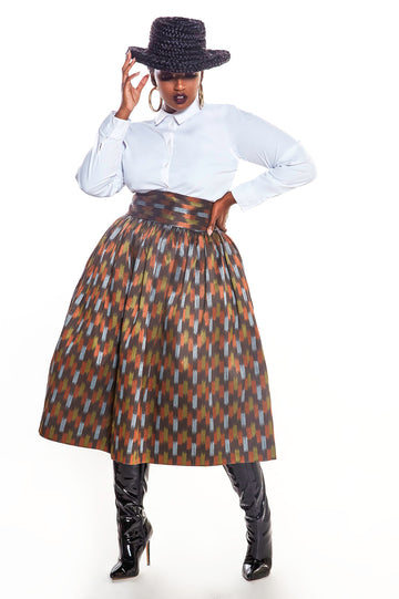 High Waist Flare Skirt-Vintage Tie Silk- JIBRI