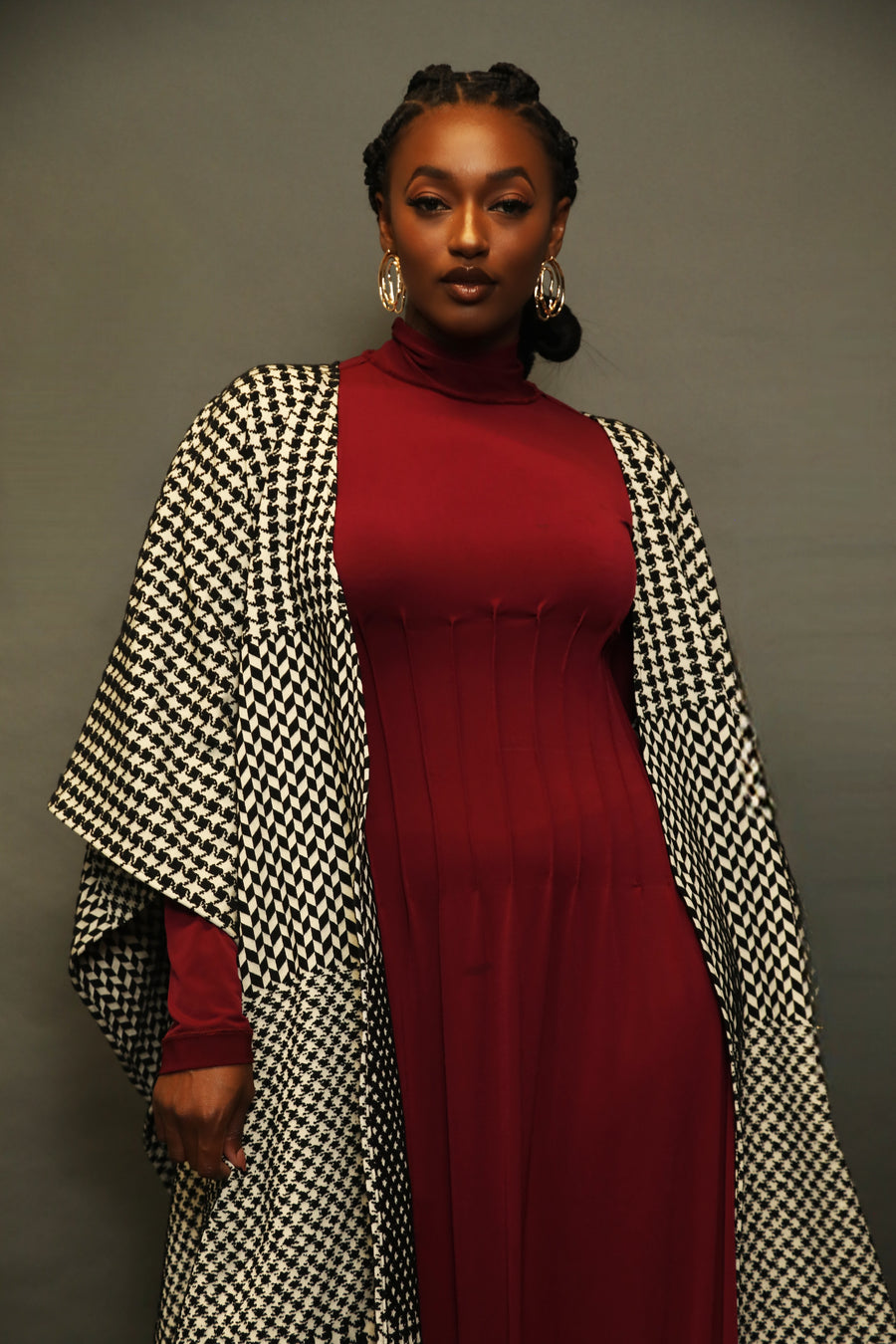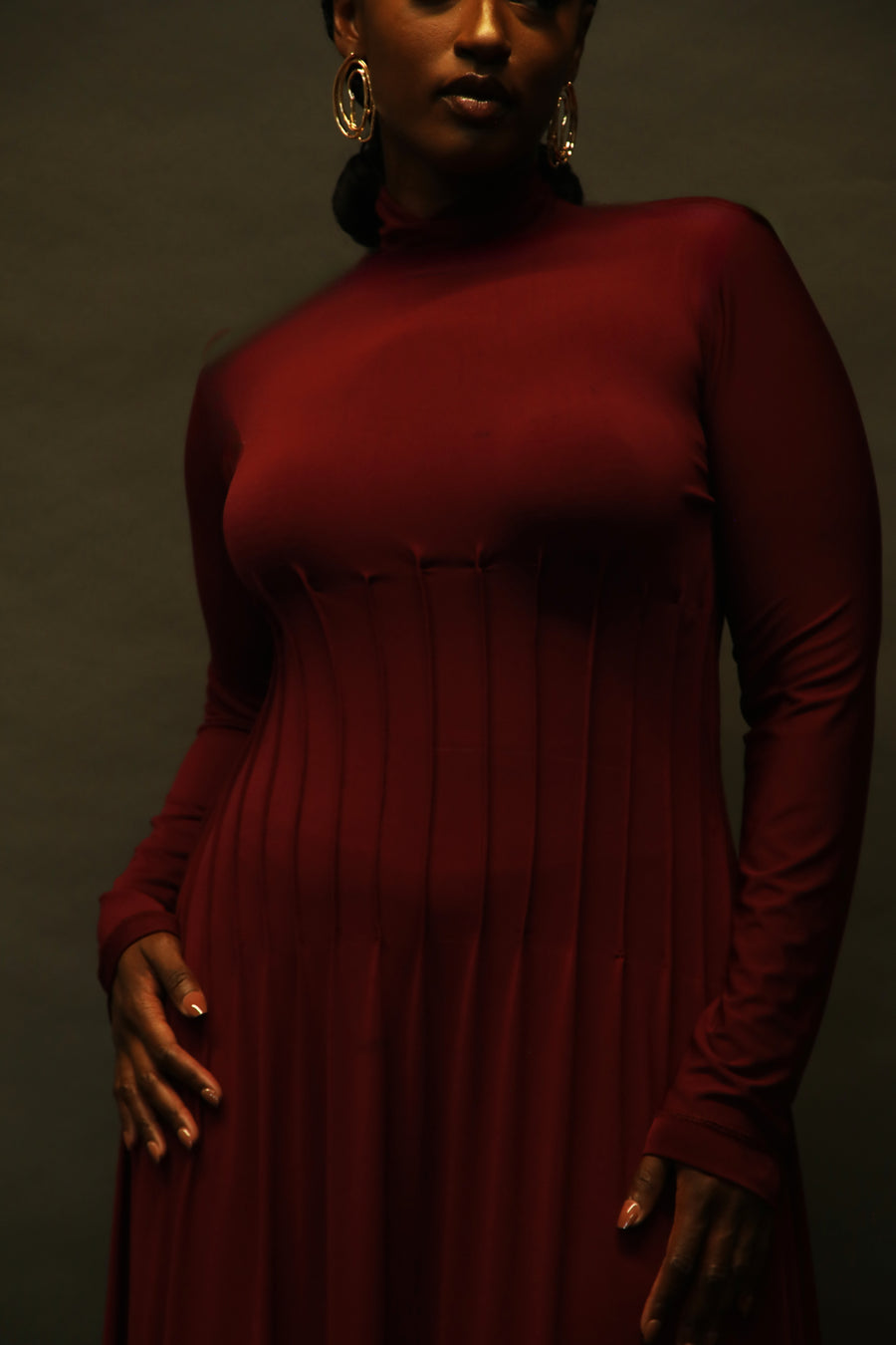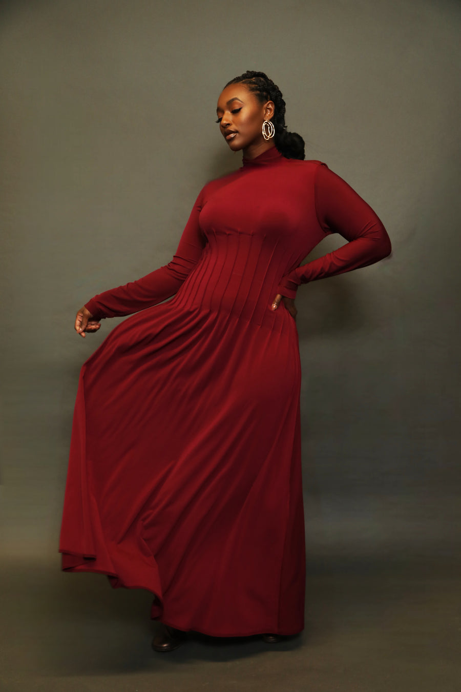 Pintuck Drop Waist Mock Neck Dress- JIBRI