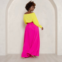 Neon Pink High Waist Belted Maxi Skirt- JIBRI