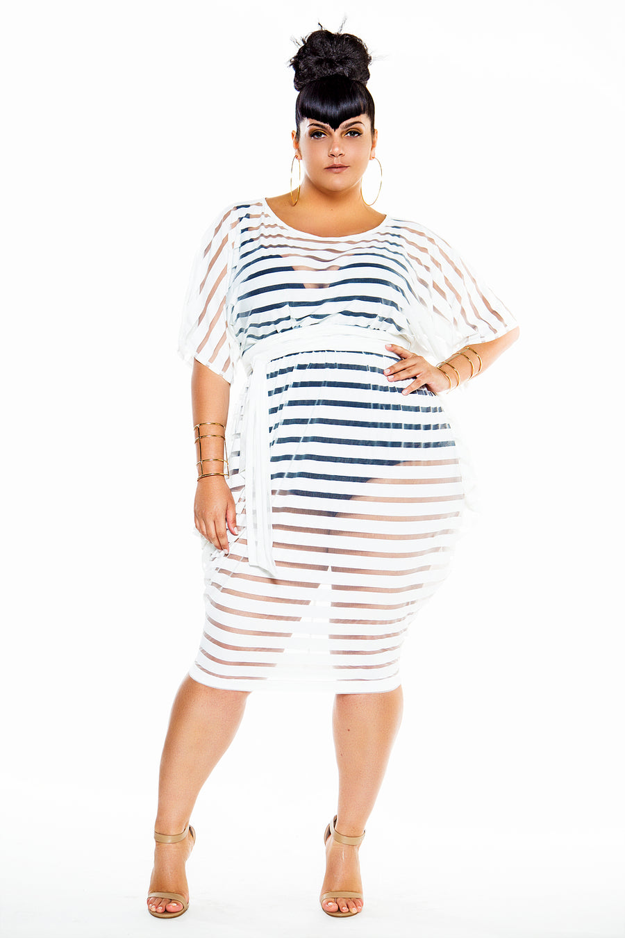 Striped Sheer Slouch Poolside Dress- JIBRI